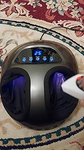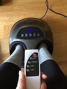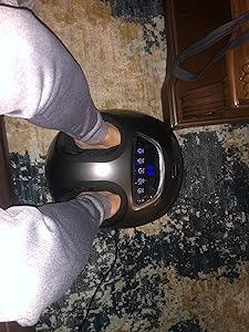I put my foot in this massager machine, and I feel very comfortable when I turned on. The control makes the function modify very easy to use. I like the mild live running, and my foot relax very much when I touch tight. The heat function is also working very well. I also tried the hard level, and I feel my foot as jumping high. The feed size also can be changed by the machine, and it is also can be controlled by hand. The machine is also good to move, and I will buy a new one for my parents. In all, this massager is even better than person, as I can use as much time as I want. I really enjoy the deep kneading, and it gave me a great time after my day work.