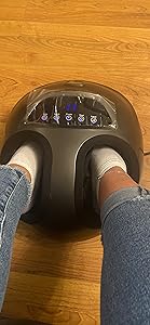 I work a long shift. We are talking about 12 hour shifts. By the end of the day my feet are super swollen. I ordered this product to help soothe my elephant feet. This is definitely does a very good job to make sure my feet are comfortable. The massager has several options to choose from based on your comfort level. Remote controls comes in handy when don’t want to bend over after a hard day. I would recommend this product to anyone like me.